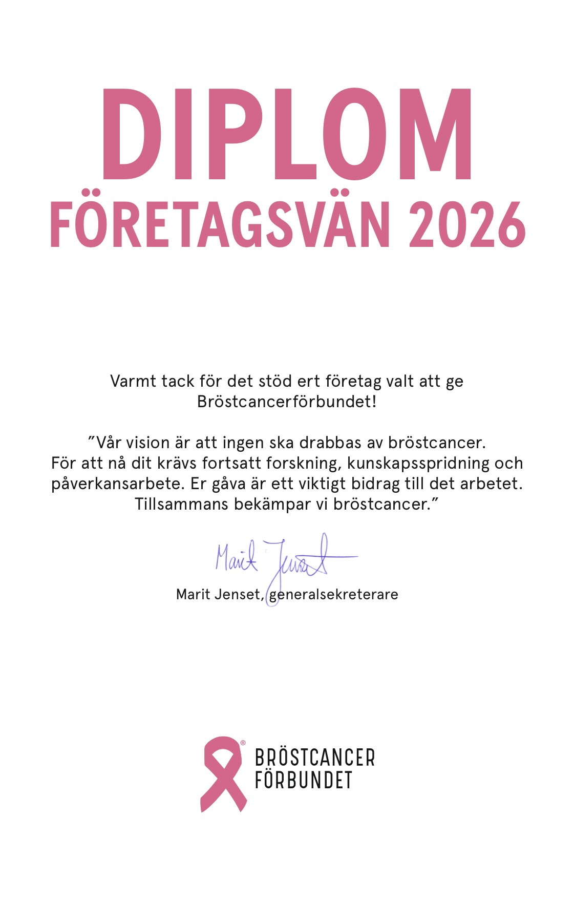 Tack vare Malin så är vi stolt företagsvän och partners till Bröstcancerförbundet.