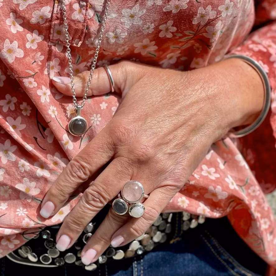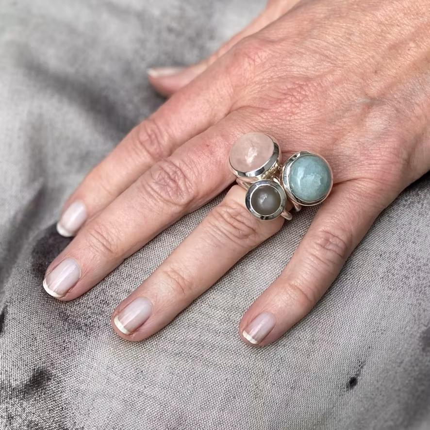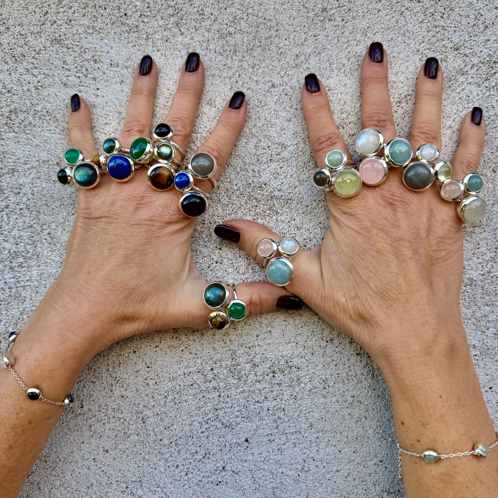 Available with a total of ten precious stones; Rose quartz, Prehnite, Onyx, Chalcedony, Tiger eye, Labradorite, Rainbow moonstone, Lapis lazuli, Aquamarine, or Grey moonstone.