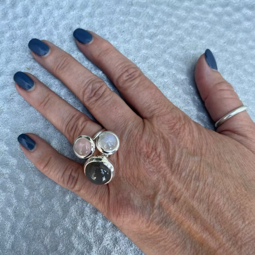 Classy silver studs that sit nicely on the earlobe. Here with magical Grey moonstone.