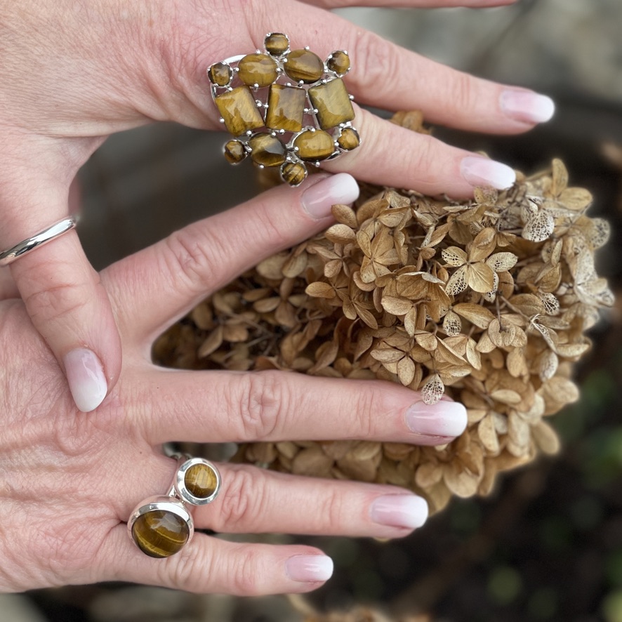 Läs mer om silverringen US med tigeröga i olika storlekar, mönster och olika bruna toner.