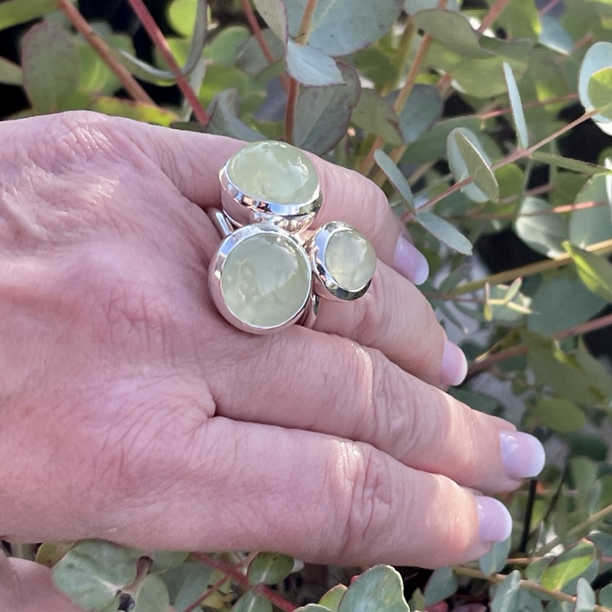 Denna säregna och ljuvligt gröna sten, som ser ut som en läcker grön druva, sägs förmedla villkorslös kärlek och helande. Vem vill inte ha en sån på sitt finger? Prehnit upptäcktes första gången på Godahoppsudden i Sydafrika, så det är kanske inte så konstigt att den sägs föra med sig hopp och helande. Om du känner dig låg och ledsen, och inte riktigt vet vad som tynger ditt hjärta, kan Prehnit hjälpa dig förstå. När du väl nått den insikten sägs den också kunna rensa bort det som bekymrar dig, och skapa klarhet och ett lätt sinne. Prehnit hjälper oss leva i harmoni med naturen, och anses kunna visa vägen till djupare insikter om både oss själva och vår omgivning. Den påstås även skänka lugn och skydda oss i en orolig miljö, som en bärare av fred och frid.
